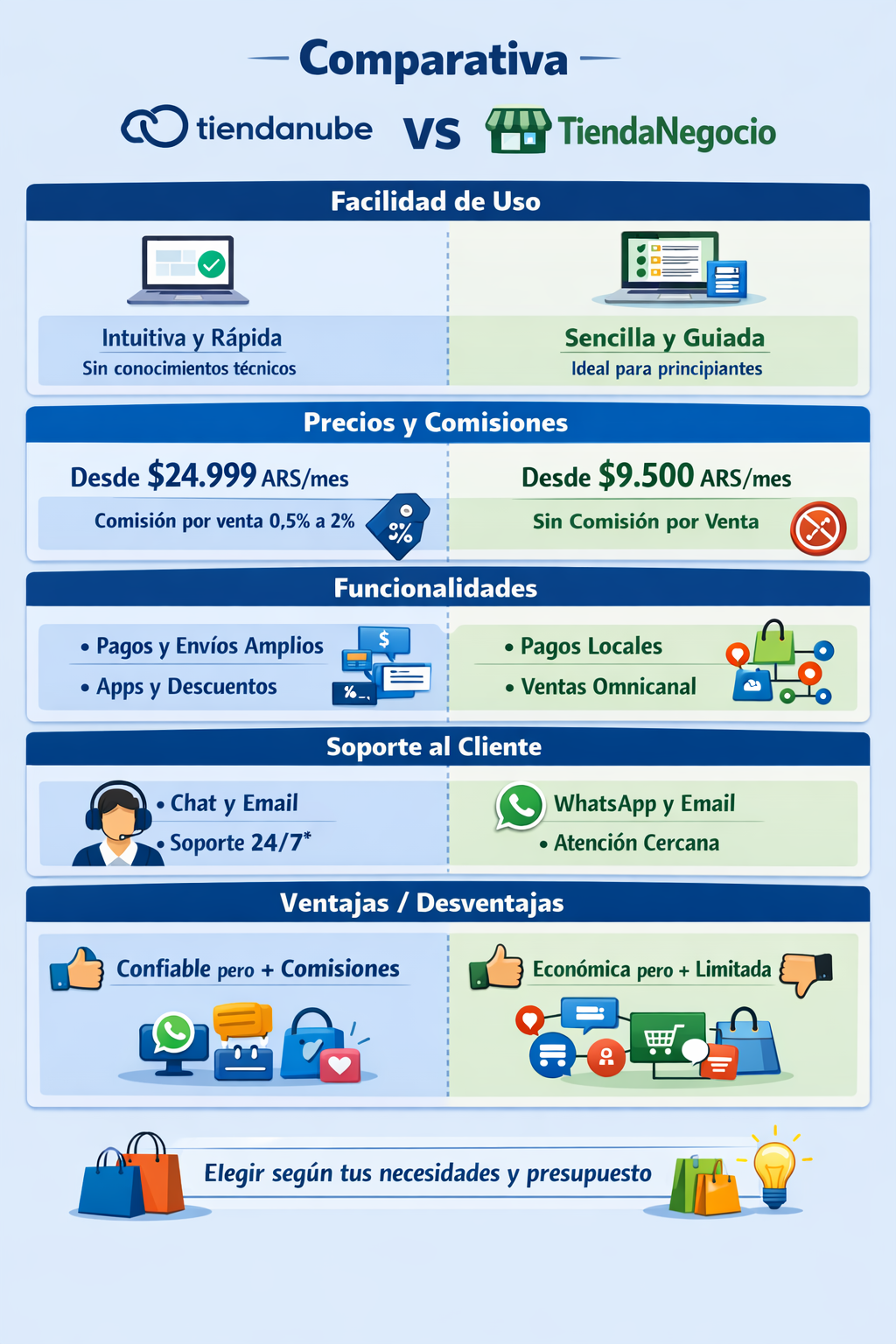 En esta comparativa de Tiendanube vs TiendaNegocio vas a ver diferencias reales en 5 aspectos clave, con pros y contras claros y una guía final para decidir según tu tipo de negocio.